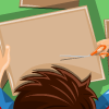 Little boy stayed alone at home. He got bored. So, he decided to walk through the house. When he entered to garage he found big bunch of empty cardboard boxes. And to have fun he decided to cut shapes from the boxes.
